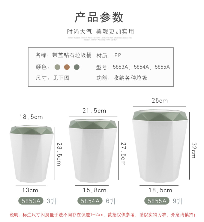 5853A-5855A帶蓋鉆石垃圾桶
